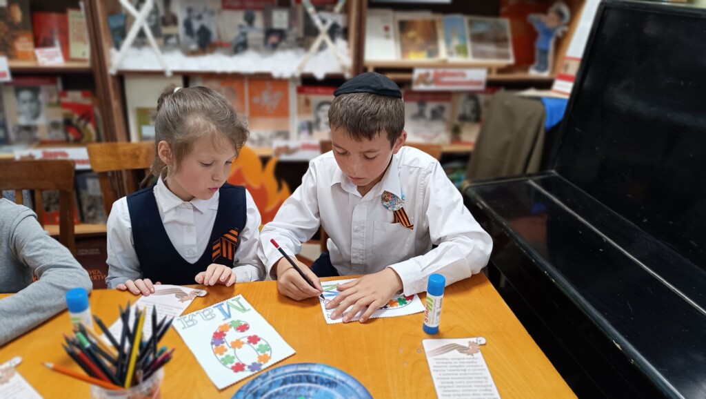 Проявить свои творческие способности ребята смогли на мастер-классах «Открытка ветерану», «Голубь мира».