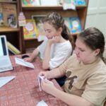 Затем «спроектировали» на мастер-классе свой самолет из бумаги в технике оригами, который украсили и даже запустили его, проверяя дальность полета.