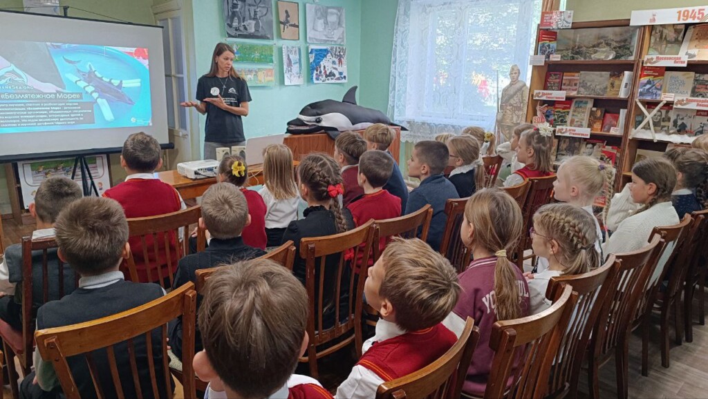 На встрече с читателями специалист рассказал об особенностях организма и среде обитания дельфинов, интересные факты о млекопитающих. Посмотрели познавательные видеофильмы о том, как понять, что дельфинам нужна помощь и о том, как эта помощь оказывается.
