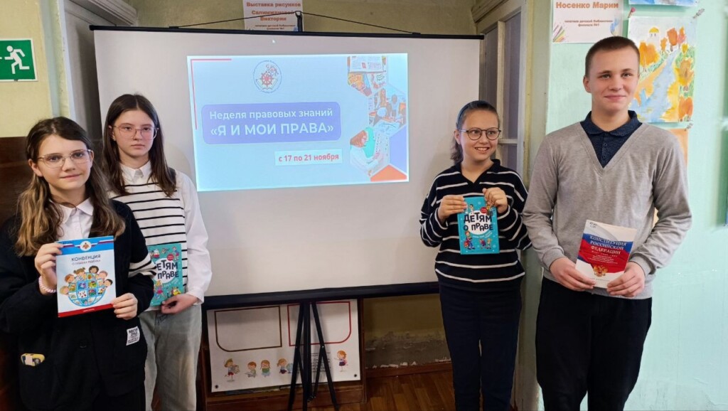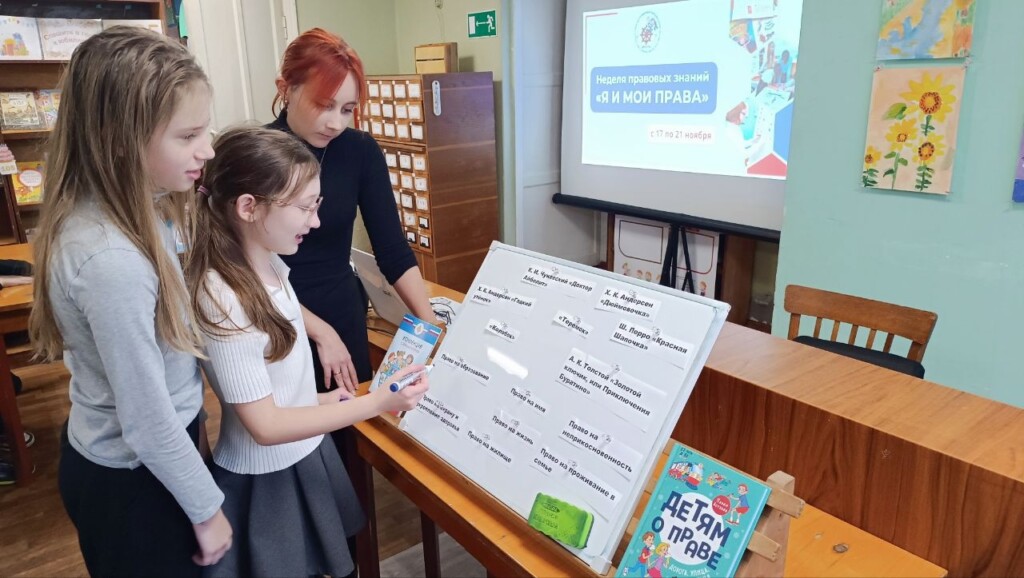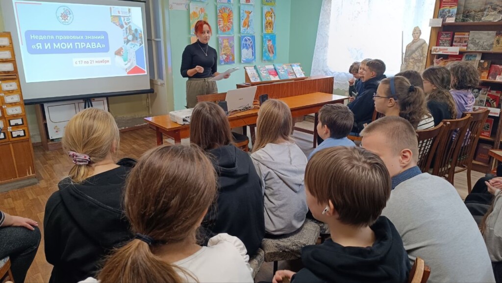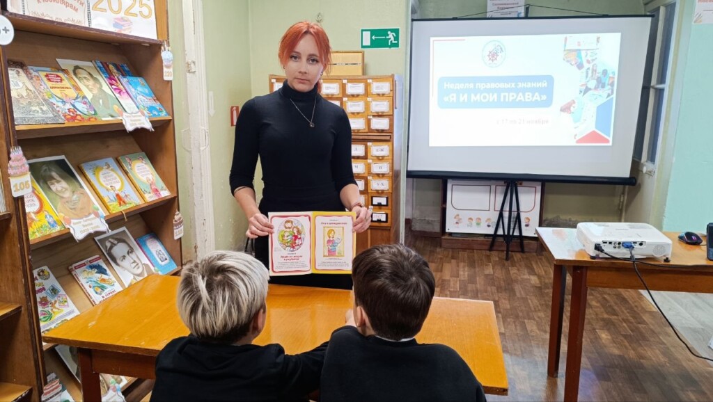 Для читателей младшего школьного возраста прошла викторина «Правовой алфавит». Библиотекарь рассказал об основных правах детей: право на фамилию, имя, отчество, жить и воспитываться в семье, на бесплатное образование, на отдых, медицинский уход. В игровой форме дети разбирали жизненные ситуации, отвечали на вопросы сказочной викторины, сопоставляли права и обязанности в жизни и школе.