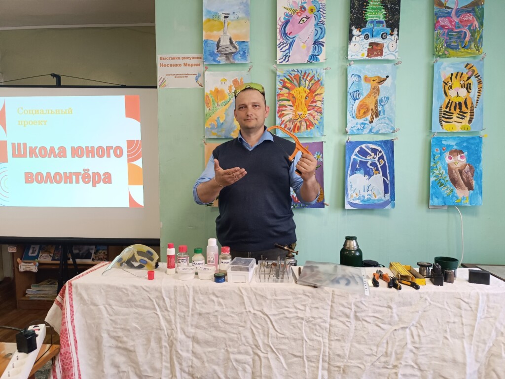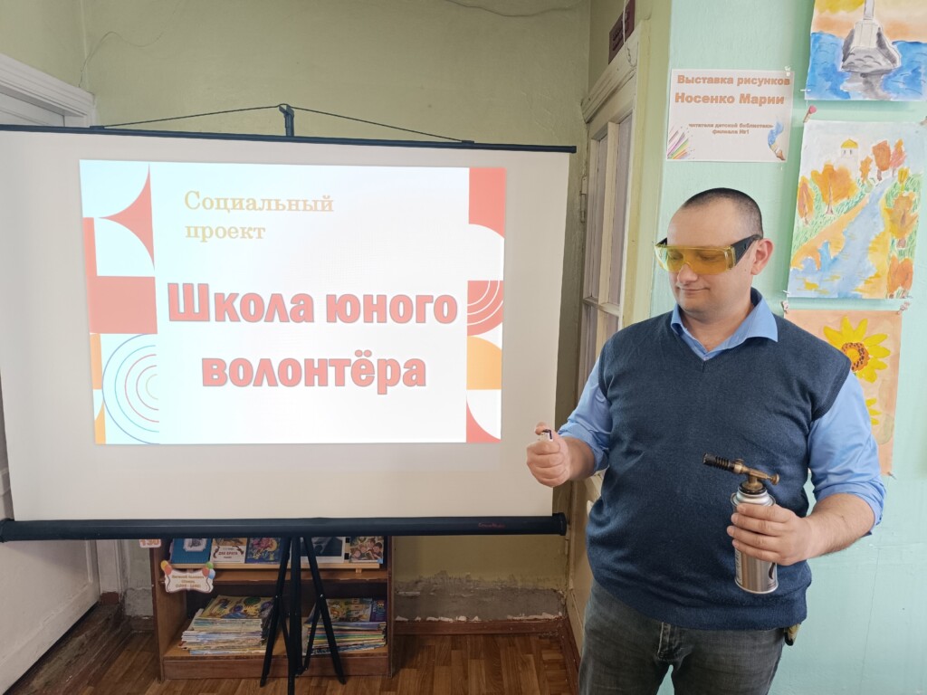 В детской библиотеке-филиале № 1 продолжается социальный проект «Школа юного волонтёра». В этот раз участники проекта пришли на историко-патриотическую встречу «Шаги истории» с членом общественной организации «Гренадёр» Анатолием Юрьевичем Кроминым.
