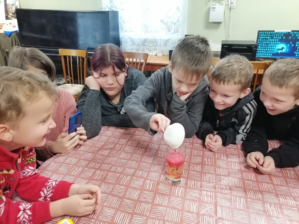 В конце путешествия ребят ждал сюрприз! Библиотека превратилась в миниатюрную, научную лабораторию. Используя вполне обыденные и привычные в быту средства, библиотекарь провел несколько зрелищных опытов. Наблюдение за бурлящими реакциями и цветными превращениями вызвало восторг у всех присутствующих.