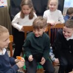 С большим удовольствием приняли активное участие в играх: «Спортивная волна», «Полезное-вредное», эстафете «Строитель». Особенно весело прошла игра «Горячая морковка». Поочередно передавая друг другу плюшевую морковь, называли съедобные и несъедобные предметы.